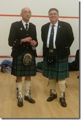 John, chairman of An Comunn Gaidhealach, the Gaelic Association, member of not only our choir but the Carloway choir as well, exchanges a few words with Doyle from Washington DC.