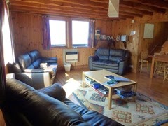 Then around the bay by the rocky path is the wooden lodge, where most of us stay. It’s very comfortable, with individual bedrrooms, and a restful lounge,